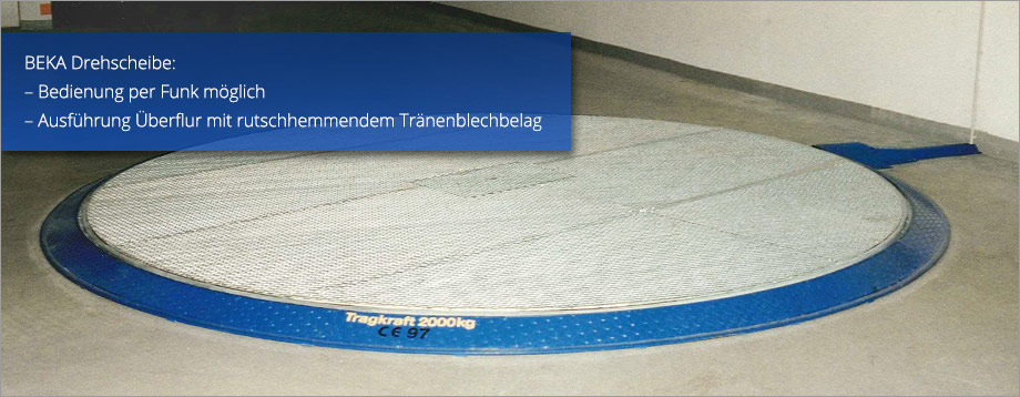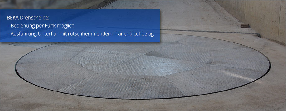 - Die Drehscheibe wird bodenbündig eingebaut. In Sonderlösungen ist eine Überflur-Lösung möglich.